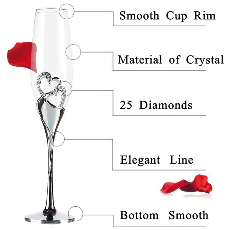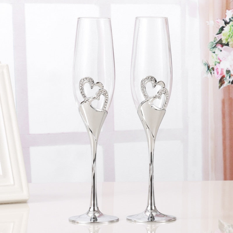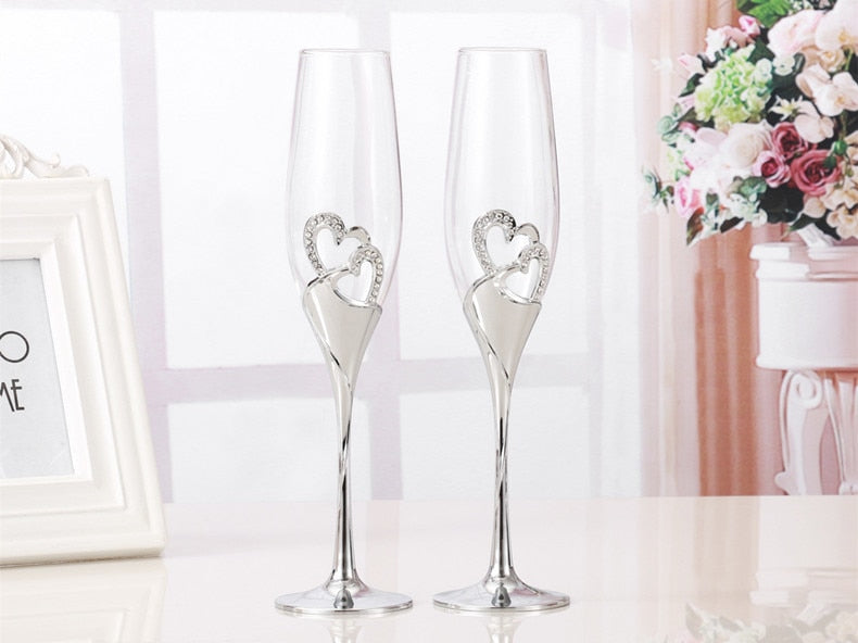 2 PCS /Set Crystal Wedding Toasting Champagne Flutes Glasses
